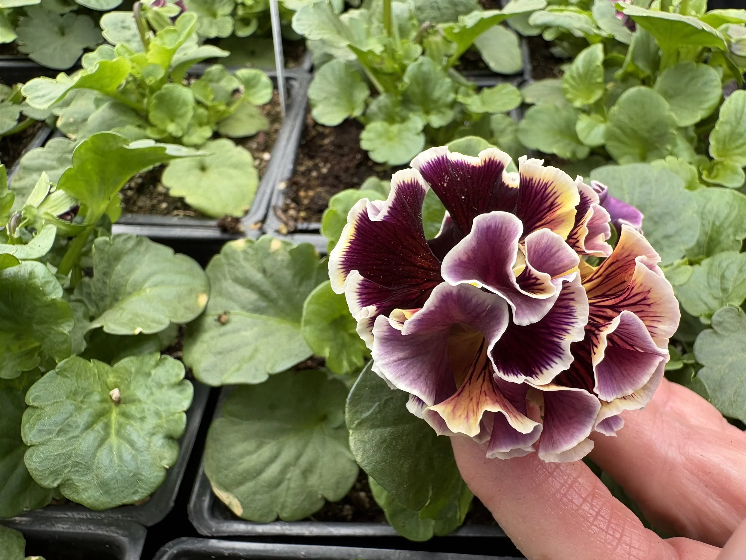 The sun is shinning, and there are so many pretty blooms. The Cannas, grasses and foliage are enough to make anyone’s Day. The last Picture is the Pansy Elegance Twilight.. They smell sooo good!!!